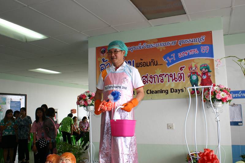 วันที่ 31 มีนาคม 2559 เวลา 11.00 น. โรงพยาบาลศูนย์ เจ้าพระยายมราช โดย นายแพทย์ชัชรินทร์ ปิ่นสุวรรณ ผู้อำนวยการฯ พร้อมด้วย คณะแพทย์ พยาบาล เจ้าหน้าที่ จัดกิจกรรม โครงการ ล้างส้วมพร้อมกัน รับวันสงกรานต์ ประจำปี 2559 ตามนโยบาย ของ นพ.โสภณ เมฆธน ปลัดกระทรวงสาธารณสุข ที่ได้ประชุมทางไกลผ่านวิดีโอ ชวน นายแพทย์สาธารณสุขจังหวัดฯ ทุกจังหวัด ผู้อำนวยการโรงพยาบาลทั่วประเทศ ล้างส้วมในโรงพยาบาลพร้อมกันทั่วประเทศ ดีเดย์บ่ายวันที่ 1 เมษายน 2559 พร้อมกำชับให้สถานบริการในสังกัดทุกแห่ง คงมาตรการ 3 เก็บบวก 5 ส. ต่อเนื่อง ค่าลูกน้ำยุงลายในโรงพยาบาลต้องเป็นศูนย์ และไม่เป็นแหล่งแพร่เชื้อไข้เลือดออก โดย วันนี้ ได้รับเกียรติ จาก นายแพทย์ชัยวัฒน์ จัตตุพร นายแพทย์สาธารณสุขจังหวัดสุพรรณบุรี ให้เกียรติมาเป็นประธาน ในพิธีฯ